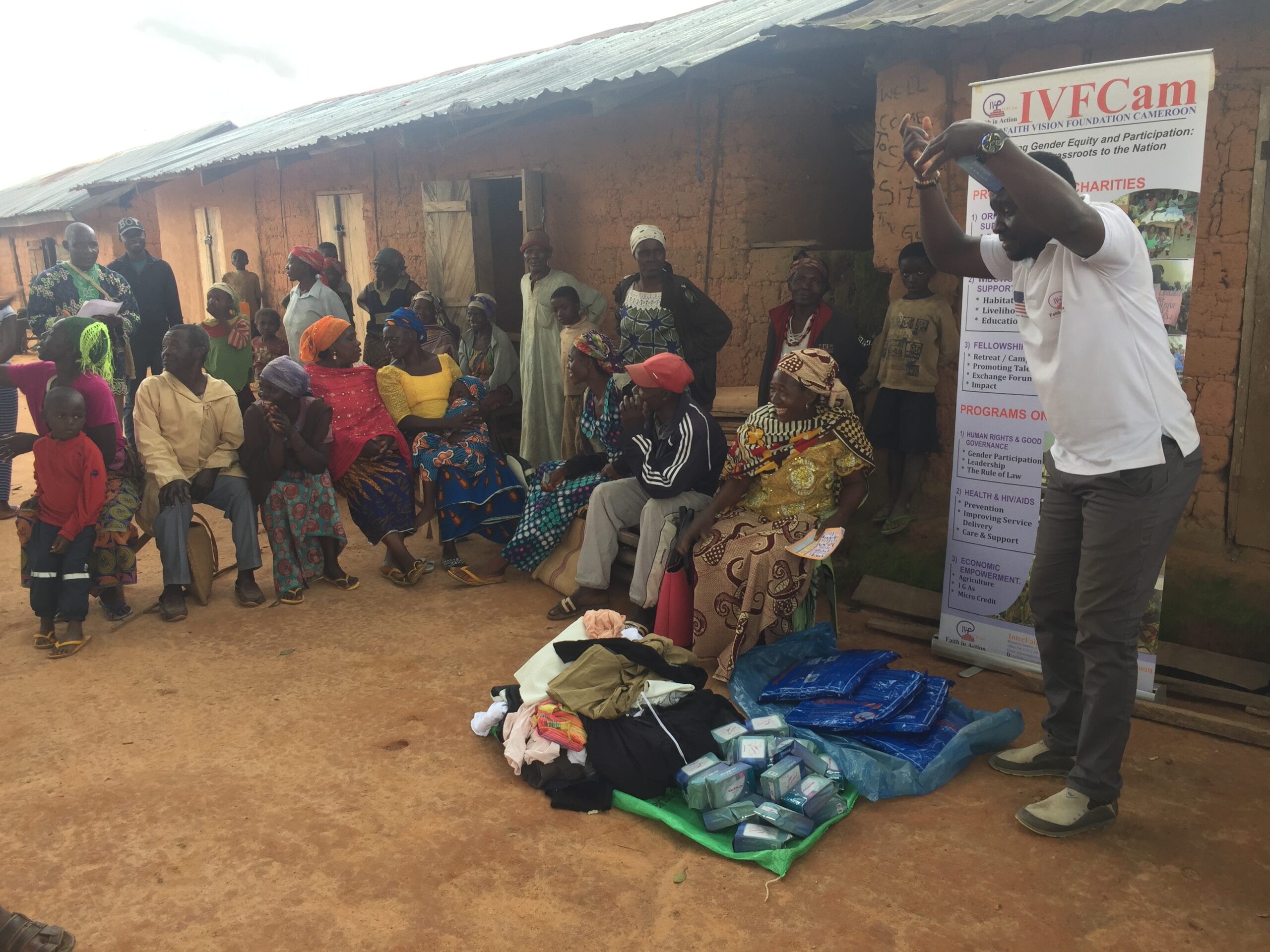 We implement strengthening Coping Mechanisms for Orphan and Vulnerable Children in Momo Division of the North West Region of Cameroon (SCCN OVC) as well as, distribute Clothes, Sanitary-Pads and mosquito nets to refugees in Ndumyaji-1 village.